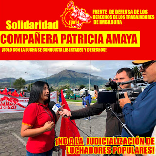 El Frente de Defensa de los Derechos de los Trabajadore de Imbabura expresa su solidaridad con todas las víctimas y con quienes hoy son perseguidos, en particular con la compañera Patricia Amaya, dirigente sindical de Ibarra y parte del FDDT-I, sometida a vigilancia, hostigamiento y procesos penales por los aparatos represivos del viejo Estado.