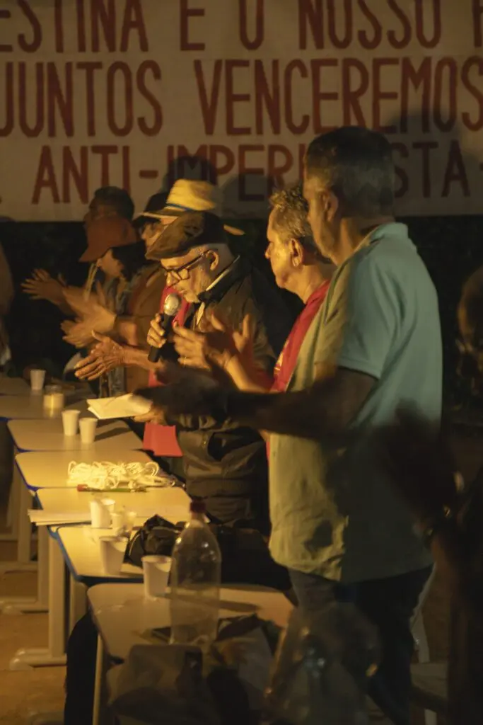 Posteriormente, un miembro de la comunidad presentó el registro de luchas y demandas de Barro Branco. Una mujer campesina habló sobre momentos en que la policía atacó al pueblo para proteger los intereses del latifundio. Otro campesino habló sobre la demolición de la casa de su padre y la destrucción de la cosecha por parte del latifundio. Algunos de estos eventos ocurrieron hace décadas, lo que muestra que la represión es de larga data.